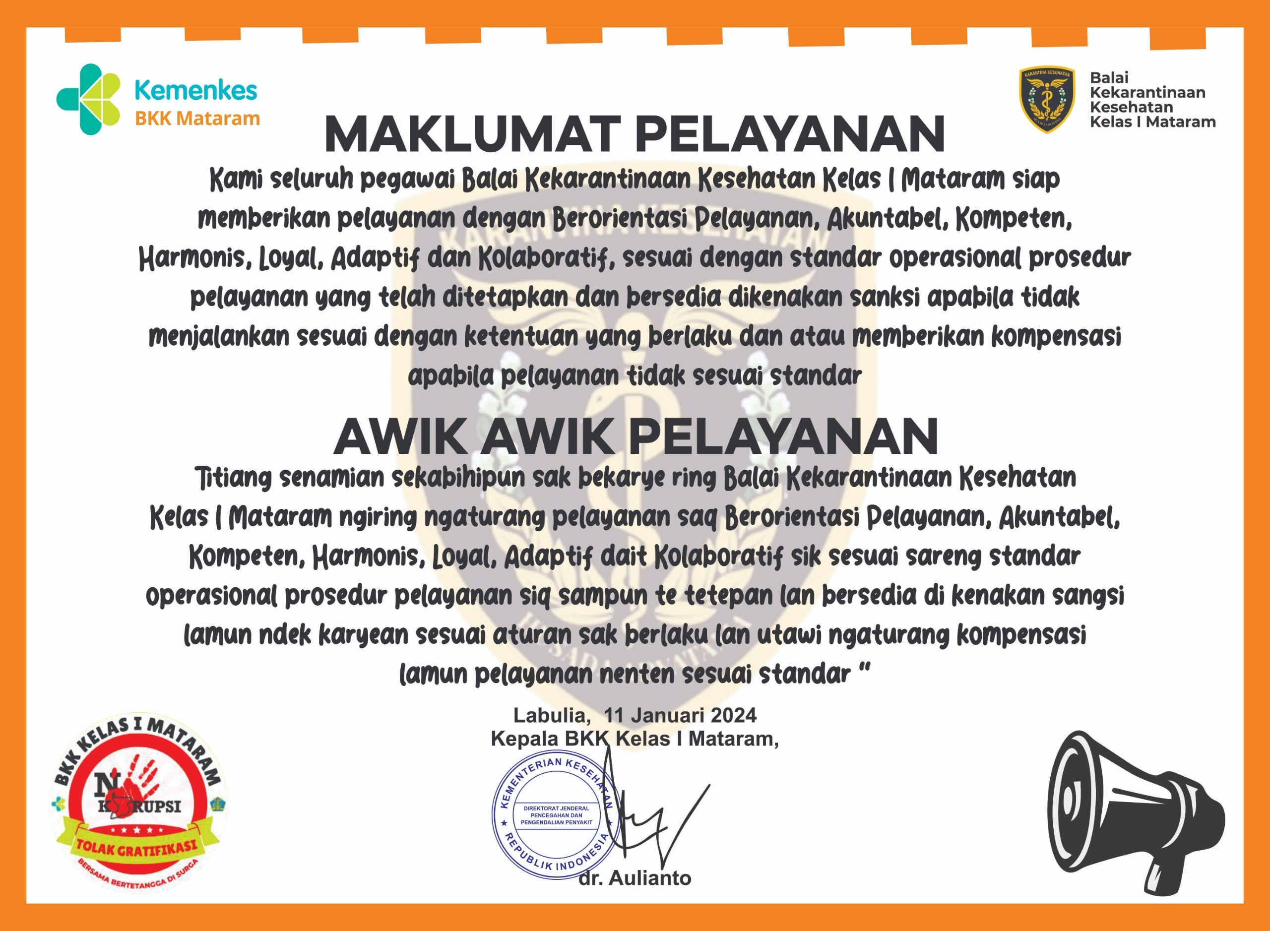 Keluarga Besar Balai Kekarantinaan Kesehatan Kelas I Mataram mengucapkan selamat dan sukses kepada