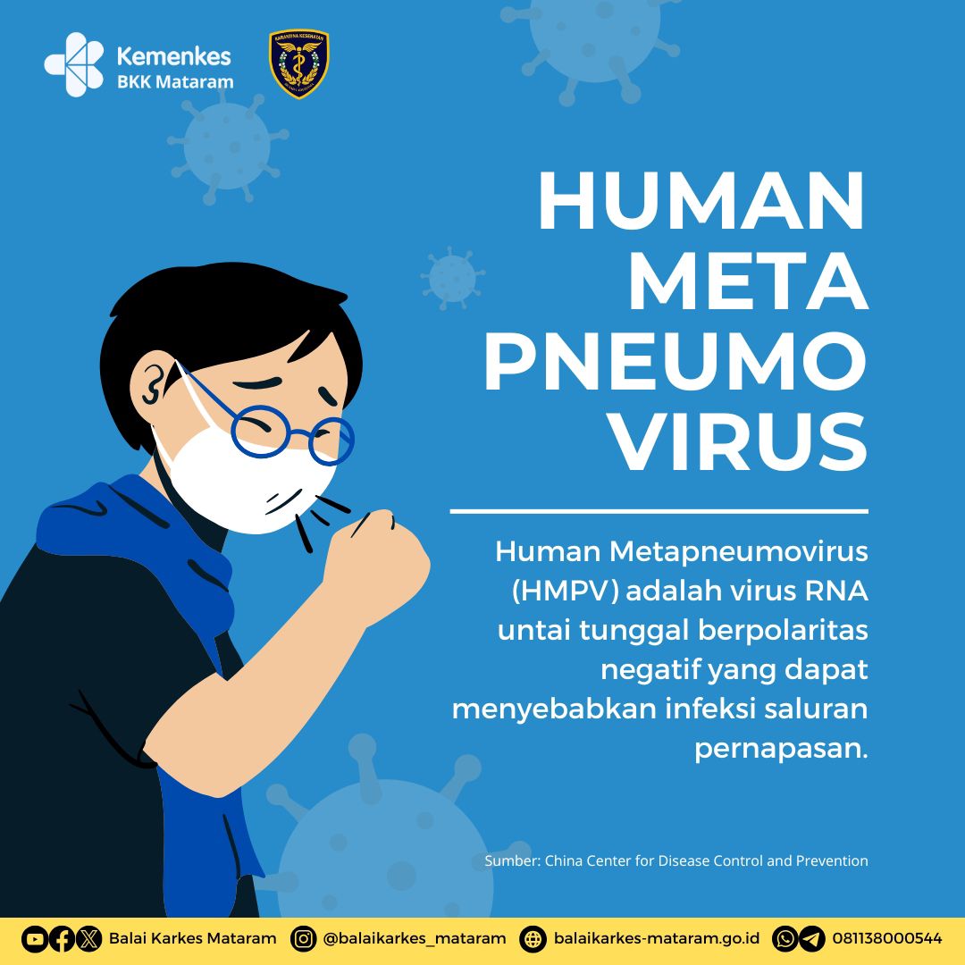 Human metapneumovirus (HMPV) adalah virus pernapasan umum yang dapat menyebabkan gejala mirip flu atau pilek biasa. Virus ini pertama kali diidentifikasi pada tahun 2001 dan sejak saat itu diakui sebagai penyebab signifikan infeksi saluran pernapasan pada anak-anak dan orang dewasa. Seperti virus pernapasan lainnya, HMPV menyebar melalui percikan pernapasan dan dapat menyebabkan gejala seperti batuk, bersin, demam, dan kesulitan bernapas. Dalam kasus yang parah, infeksi HMPV dapat mengakibatkan pneumonia atau bronkiolitis, terutama pada anak-anak kecil, orang dewasa yang lebih tua, dan individu dengan sistem kekebalan tubuh yang lemah. Oleh karena itu, penting untuk menjaga kebersihan yang baik, seperti mencuci tangan secara teratur dan menutup batuk serta bersin, untuk membantu mencegah penyebaran HMPV.
