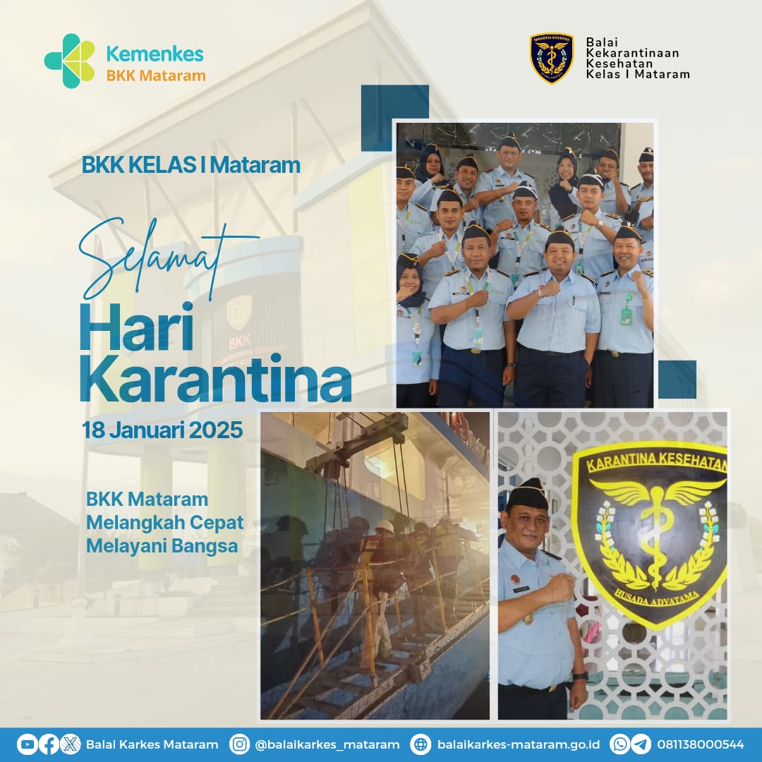 Pada puncak peringatan Hari Kesehatan Nasional yang ke-60, Balai Karkes Mataram mengikuti Upacara Peringatan Hari Kesehatan Nasional di Dinas Kesehatan Provinsi Nusa Tenggara Barat. Pada kesempatan tersebut, empat pegawai Balai Kekarantinaan Kesehatan Kelas I Mataram menerima Penghargaan Satyalancana Karya Satya, yang diserahkan langsung oleh Pj. Gubernur NTB. Penghargaan ini merupakan apresiasi atas dedikasi dan kontribusi mereka dalam memberikan pelayanan kesehatan yang berkualitas kepada masyarakat. Mereka adalah: